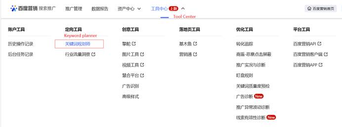 Like Google, Baidu also has presented an official keyword exploration tool: Baidu keyword planner. It’s inside each Baidu PPC account. In this way, if you don’t do Baidu advertising, you won’t be able to use this tool directly.