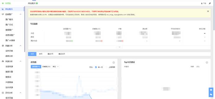 Homepage of Baidu Analytics