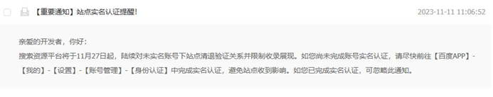 On double 11 of 2023, Baidu announced that they would impose real name verification of Baidu accounts that people use for verifying Baidu Webmaster Tools. Then, they would remove indexation of unverified websites from Baidu. This policy means that you can’t be anonymous on Baidu. Everyone should be responsible for his websites. It’s actually a great policy which prevents illegal businesses from harming people on Baidu.
